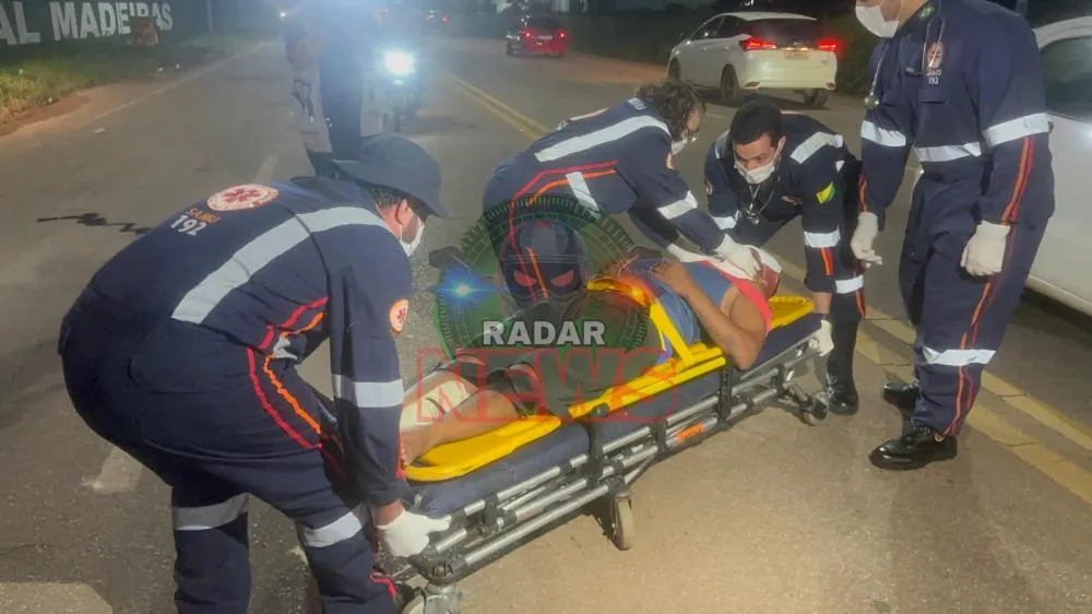Motociclista de aplicativo sofre fratura exposta após ser atingido por carro na Avenida Antônio da Rocha Viana, em Rio Branco