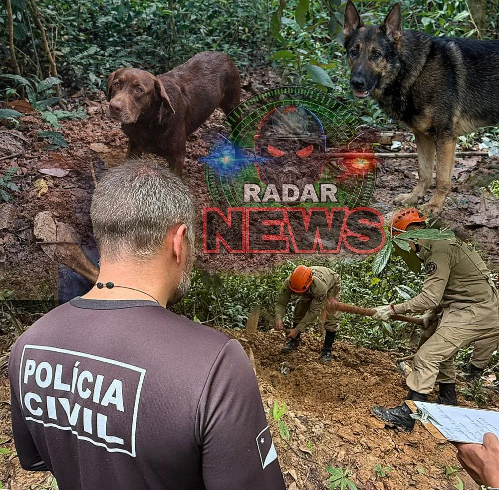 Restos mortais foram encontrados enterrados após dupla indicação de cães do Corpo de Bombeiros durante operação com a Polícia Civil