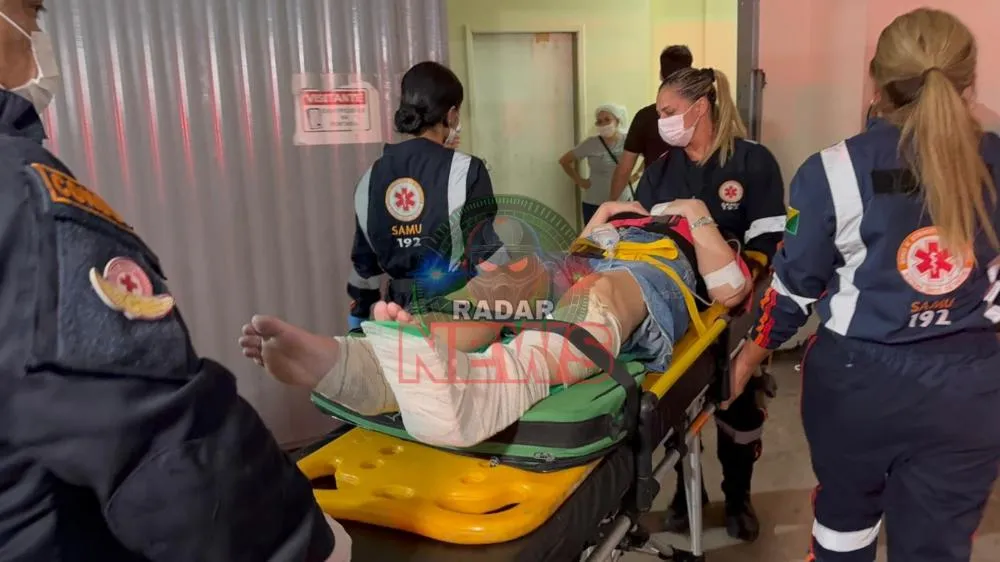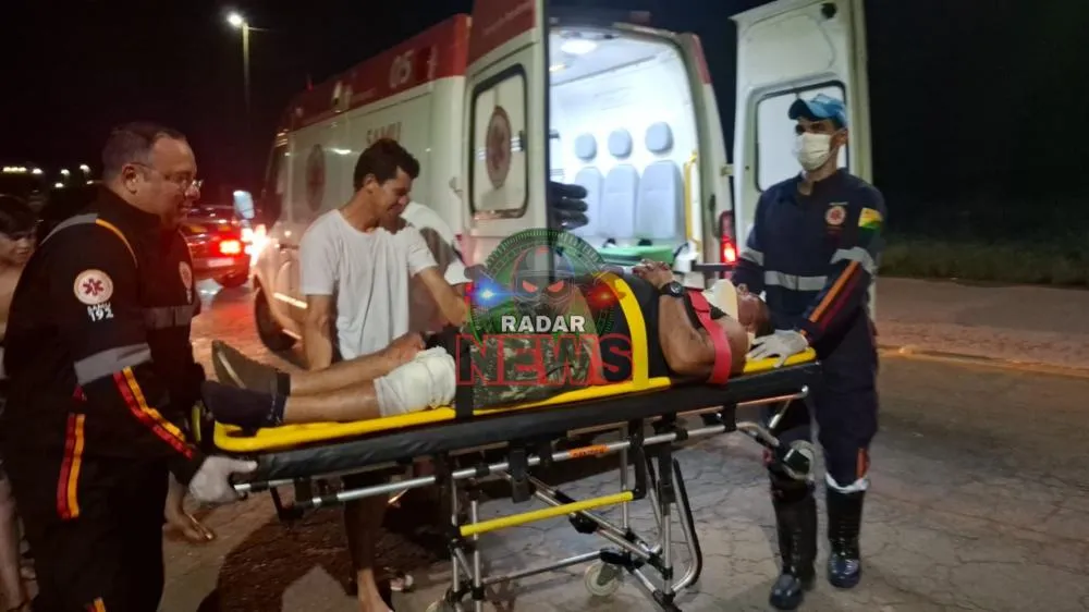 Homem e mulher sofreram fraturas após impacto entre moto e carro, mas seguem fora de risco
