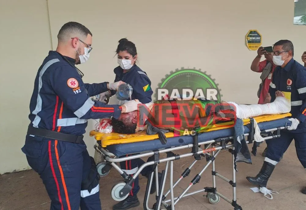 Em seguida, foi encaminhada ao Pronto-Socorro de Rio Branco, onde deu entrada no setor de traumatologia com diagnóstico de traumatismo cranioencefálico (TCE) gravíssimo, ferimento corto-contuso na região da face com sangramento ativo, fratura no joelho e suspeita de embriaguez. O caso ficou sob os cuidados da equipe médica plantonista.