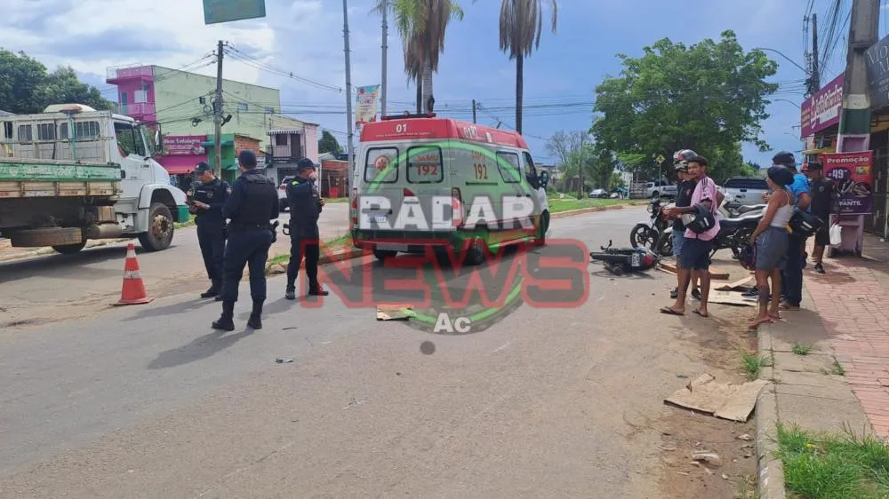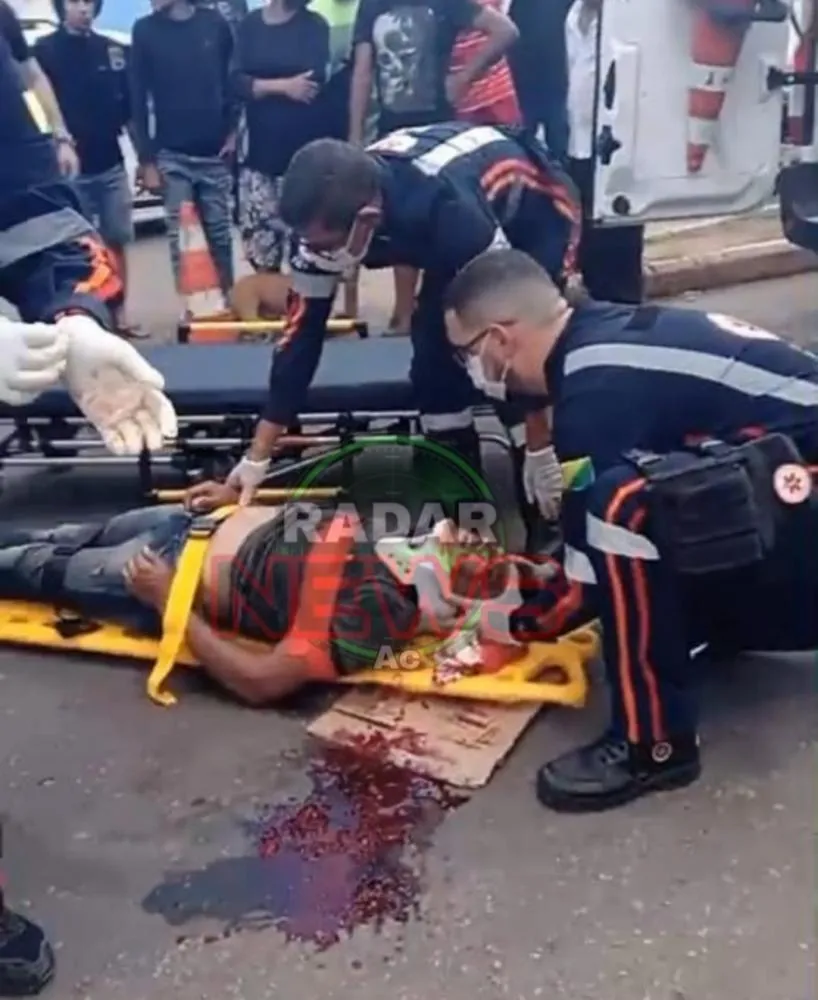 Um pedestre ficou em estado gravíssimo após ser atropelado por um casal de adolescentes que trafegava em alta velocidade em uma motocicleta, na tarde desta sexta-feira (24), na Rua Valdomiro Lopes, que divide os bairros Conquista e Manoel Julião, em Rio Branco (AC).