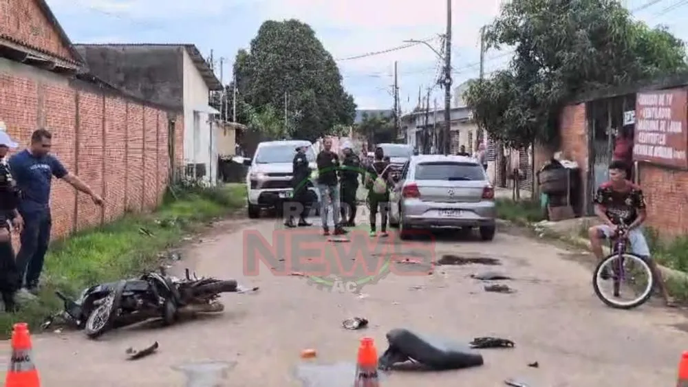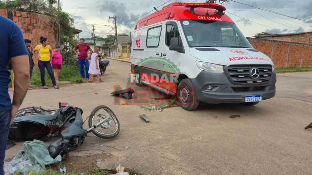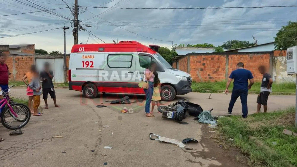 O acidente aconteceu na tarde desta segunda-feira (22), no cruzamento das ruas da Laranja com a Rua do Limão, no bairro Mocinha Magalhães, em Rio Branco (AC).