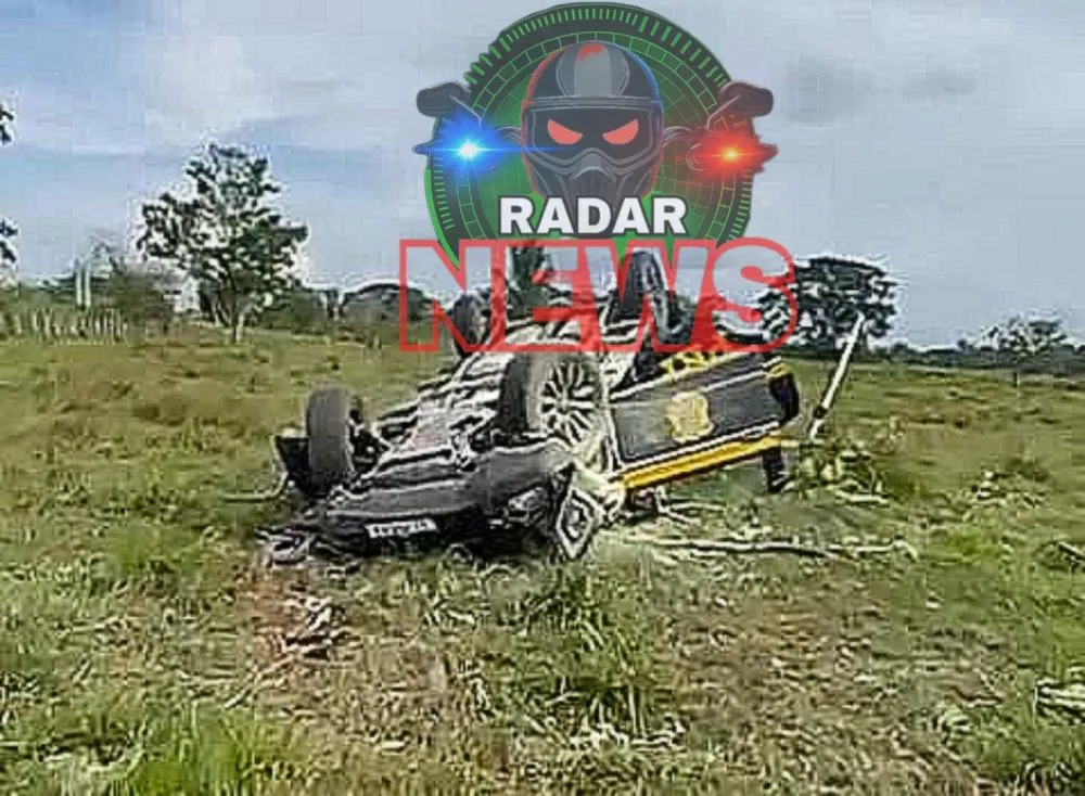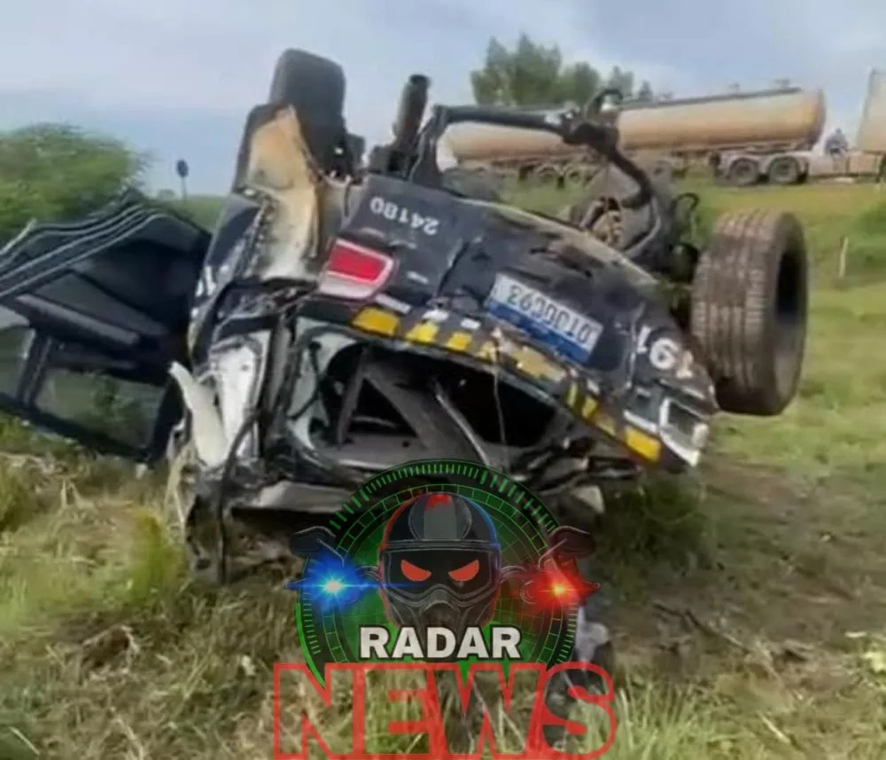 Uma das viaturas capotou diversas vezes e ficou completamente destruída, enquanto a outra aparentemente não sofreu grandes danos.