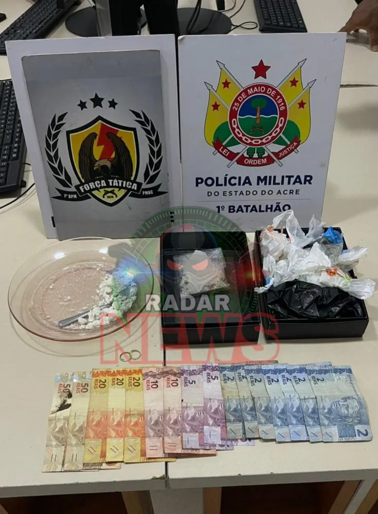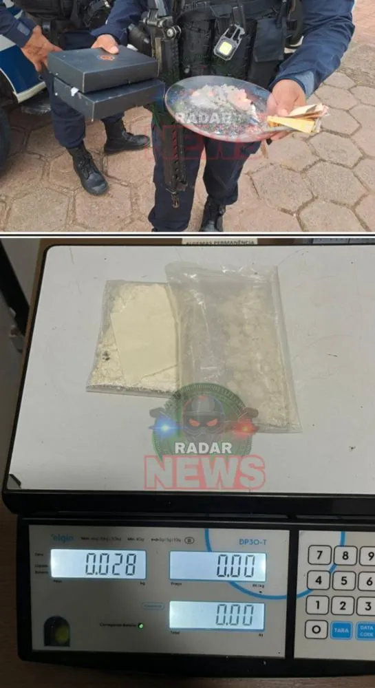 Ao retornar ao ponto inicial da fuga, os agentes localizaram um prato com resquícios de substância semelhante à cocaína, conhecida como “merla”, além de uma porção pronta para venda, duas caixas de preservativos utilizadas para armazenar o entorpecente e sacos plásticos picotados. No total, foram apreendidas cerca de 0,028 kg da droga, evidenciando a prática de tráfico.
