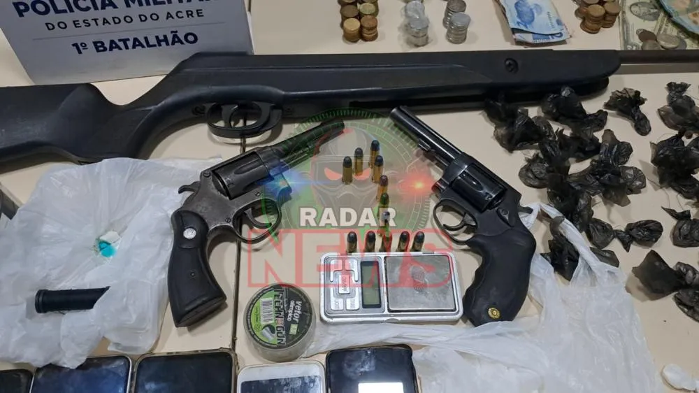 Na tarde desta sexta-feira (13), uma ação da Polícia Militar do Acre (PMAC) resultou na prisão de um casal e na apreensão de armas de fogo, drogas e equipamentos usados para monitorar a presença policial no bairro Habitasa, em Rio Branco.