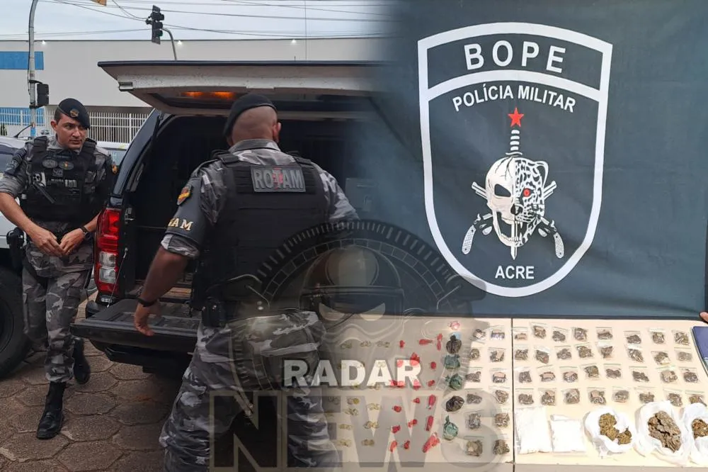 Uma ação do Batalhão de Operações Policiais Especiais (BOPE), por meio da Companhia de Choque, resultou na prisão de um homem e na apreensão de aproximadamente 4 quilos de drogas na tarde desta terça-feira (4), no bairro Tancredo Neves, em Rio Branco.