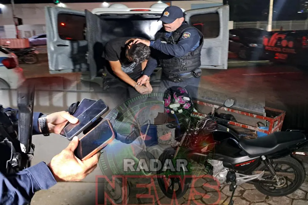 A Polícia Militar foi acionada via COPOM e iniciou buscas imediatamente. A guarnição do Comando de Patrulha, Asp. Sánchez, que entrava de serviço, agiu de forma rápida e eficiente e conseguiu localizar o suspeito. Com apoio de informações de rastreamento da motocicleta, os policiais acompanharam o deslocamento em tempo real.