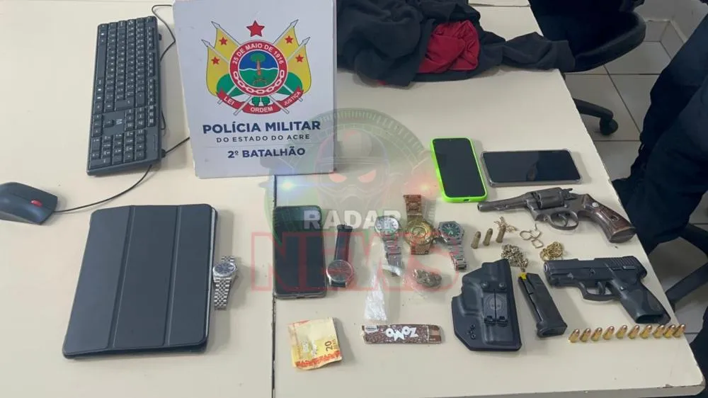 De acordo com a Polícia Militar, o trio invadiu a residência de um policial penal, onde rendeu o agente e seus familiares sob ameaça de armas de fogo. Durante a ação criminosa, os suspeitos subtraíram diversos bens, entre eles aparelhos eletrônicos, relógios, a arma funcional da vítima e um veículo.