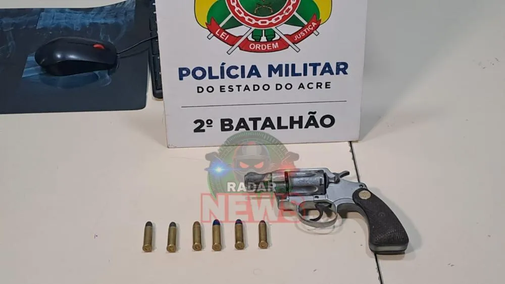 Durante a abordagem, a mulher confirmou a existência da arma e indicou onde ela estava guardada. Os policiais encontraram um revólver calibre .38, da marca Colt, municiado com seis cartuchos e em condição de pronto uso.