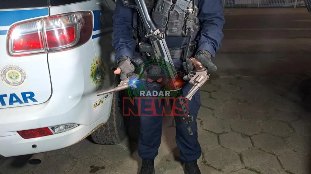 A equipe se deslocou até o local e conseguiu abordar quatro indivíduos. Três deles ainda tentaram fugir, mas foram contidos pelos policiais.Durante a abordagem, foram apreendidas duas armas de fogo, recuperados os celulares roubados e o dinheiro levado durante o crime.
